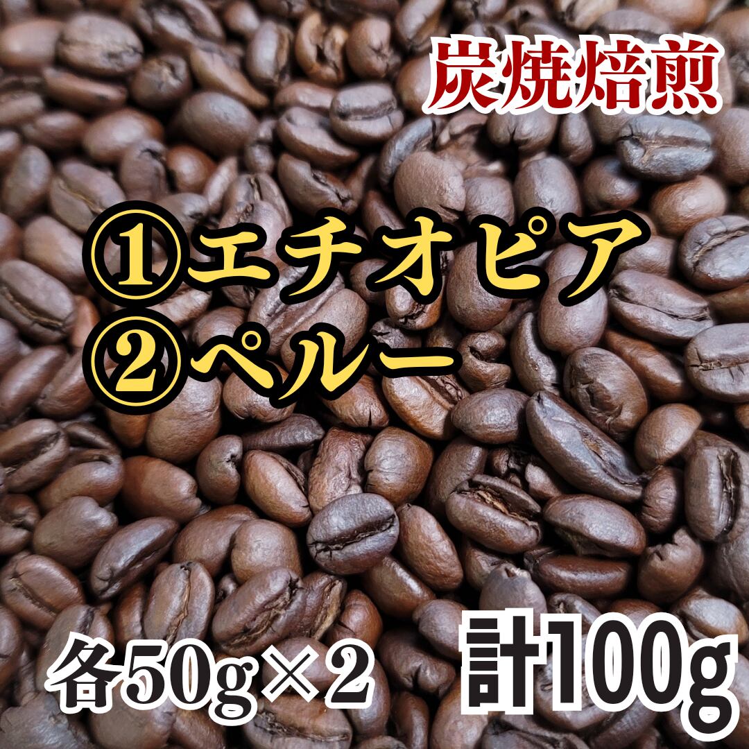 【エチオピア・ペルー】2種類×50g 炭焼 自家焙煎珈琲豆 計100g
